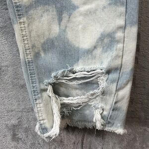 Heritage America Men Distressed Acid Wash Jeans Cloud Print Ripped Denim 34x20