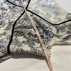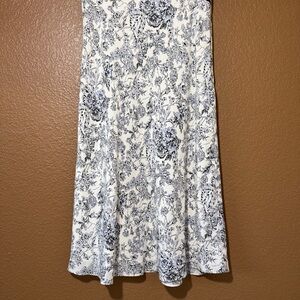 LOFT 90s Silk Babydoll Floral MIDI Dress Sz 6 Black White Blue Flowy Fairy Y2K