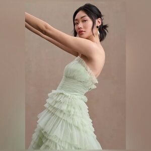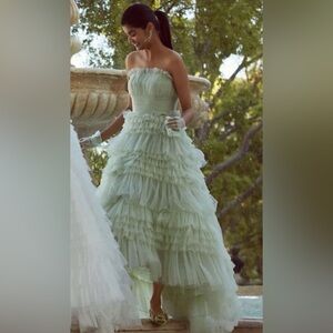 New MAC DUGGAL Tiered Ruffle Strapless Tulle A-Line High-Low Gown #20573 sz: 8