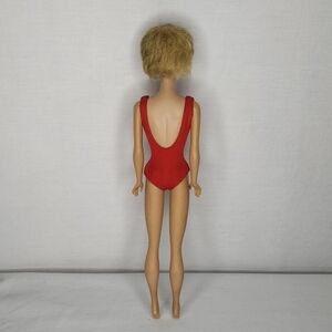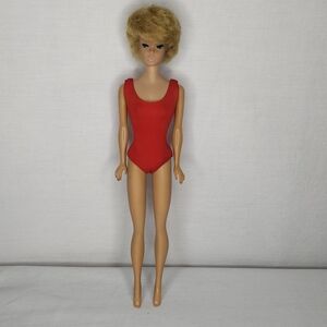 1962 Bubble Cut Barbie doll wearing a vibrant red swimsuit. Has some marks see photos.