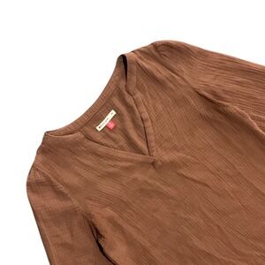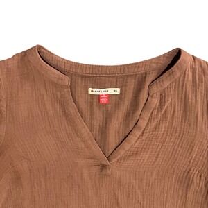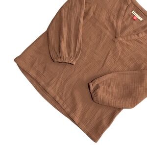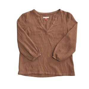 Marine Layer Brown Cotton Gauze Split Neck Boho 3/4 Sleeve Blouse XS Lightweight