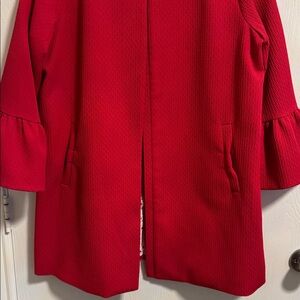 ELLE Textured Bell Sleeve Jacket Floral Appliqué Button Women’s XL Collarless Lined Classic Statement
