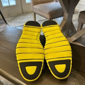 Stylish brown leather men's shoes featuring a vibrant yellow sole. Perfect for adding a pop of color to your outfit.lightweight shoe.