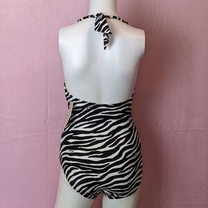 Michael Kors Black and White Zebra Print Twist Front Halter One Piece Swimsuit