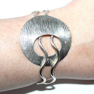 Sterling Silver Modern Abstract Circle Wave Cuff Bracelet 26 Grams
