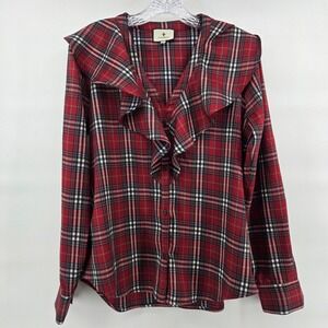 Tuckernuck Plaid Ruffle Collar Blouse Medium Red Preppy Schoolgirl Academia