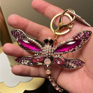 Add a touch of elegance to your accessories with this stunning pink dragonfly key holder. Perfect for keeping your keys organized in style.