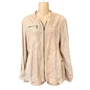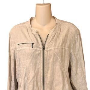 Size Large Tommy Bahama Two Palms Seam Linen Zip Front Jacket. Retails $148. Like new except the zipper pull bottom is off, but it zips fine.