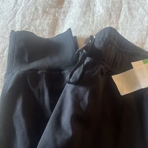 Mono B Jogger Sweatpants Womens Size S Black Ribbed Pockets Stretch