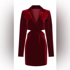 The classic blazer dress gets a sexy update in the oxblood velvet version by Nicholas featuring waist snatching cutouts.