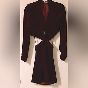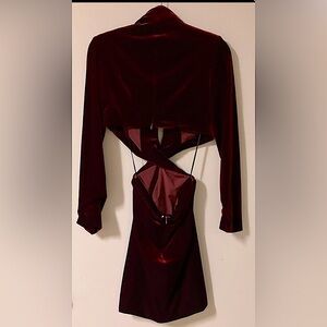 Nicholas Red Wine Velvet Dress w/ Side Cut Outs - Size &