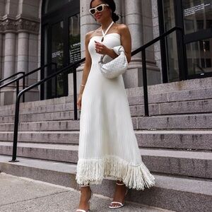 Express Ribbed Halter Neck Fringe Midi Sweater Dress