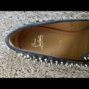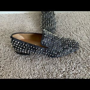 Bold black loafers with striking silver spikes. Iconic design by Christian Louboutin. In mint condition. Light wear on soles.