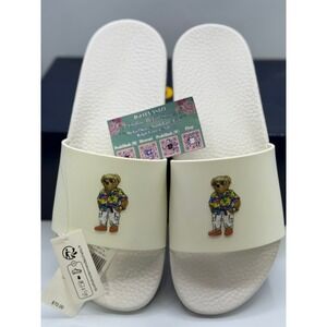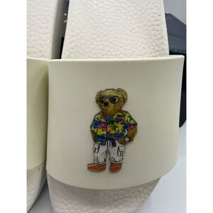 Polo Ralph Lauren Cayson Polo Bear Slides Men's White Resort Tropical 12M NWOB