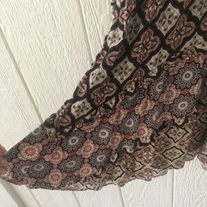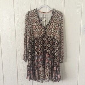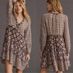 Anthropologie Boho Brown and Cream Bishop Tiered Mini Dress Size S NWOT
