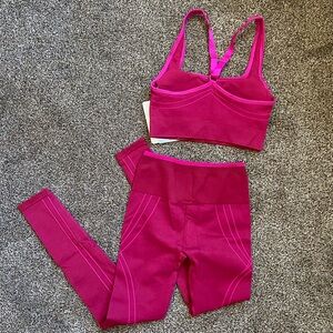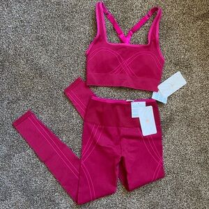 NWT SET! Fabletics Adele Corsetry Seamless Sports Bra & Legging Brick/Hot Pink
