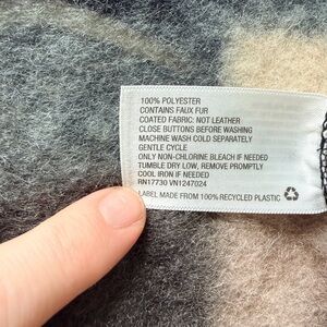 Stylish wool-blend jacket with a soft texture. Features a classic design. Ideal for cool weather. Fake leather accents on end of sleeves and pockets. Worn once. Like new condition. Size medium.