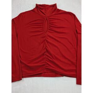 Feathers Size 2X Red Mockneck Keyhole Ruched Long Sleeve Blouse