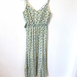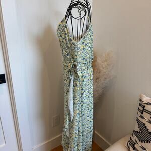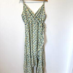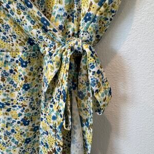 Altar'd State Yellow/Blue Floral Ruffle Faux Wrap V-Neck Cottage Maxi Dress- L
