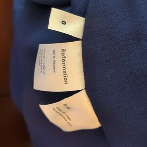 Reformation Sleeveless Navy Blue Flirty Nikita Shoulder Tie Crepe Midi DressStroll along city streets or twirl across the dance floor in this flirty midi dress fashioned with ruffled trim at the sweetheart neck and a swishy skirt. 100% viscose - Hidden back-zip closure- Sweetheart neckline- Sleeveless - Ties at the shoulders- Smocked back panel- Lined.