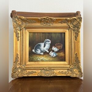 Gorgeous Bunny Painting in Ornate Gold Frame
