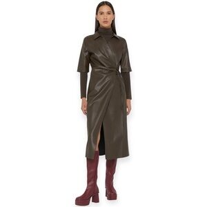 🤎 Oak + Fort “Vegas” Faux Leather Wrap Dress – NWT
