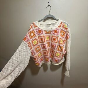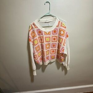Zara Sweater | Zara Chenille Crocheted Pink and Orange