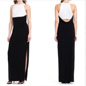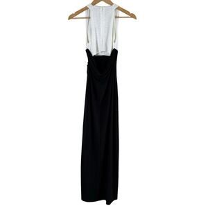 Lauren Ralph Lauren Sequin Bodice Cutout Back Formal Gown Black White, Size 0P