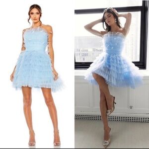 Crafted from delicate tulle, this dress features feathered detailing that adds a touch of movement. The strapless design enhances your silhouette, while the fit and flare silhouette create a flattering shape. Perfect for formal events or special occasions, this dress is sure to make a statement and leave a lasting impression.