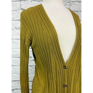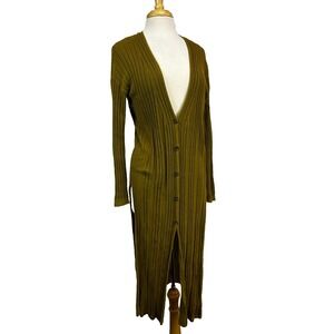 Free People Long Button Up Cardigan Sweater Ribbed Light Olive Green V-Neck SZ S
