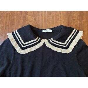 Sandro Paris Ruffle Sailor Collar Wool Sweater Black Women's Size 0 Kawaii