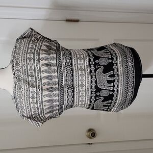 Live 4 Truth Size M Black and Cream Boho Paisley Pattern Blouse with Elephants