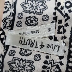 Live 4 Truth Size M Black and Cream Boho Paisley Pattern Blouse with Elephants. Excellent Used Condition, No Holes, Rips, Stains or Snags. Please refer to measurements in photos to ensure proper fit. Shown on size 4-6 mannequin.