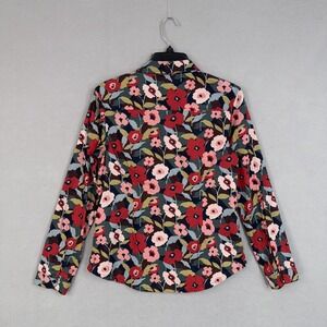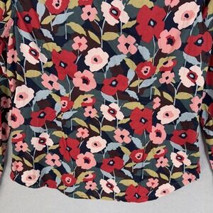 Color: Multicolor floral print with shades of navy, red, pink, light blue, and olive green.
