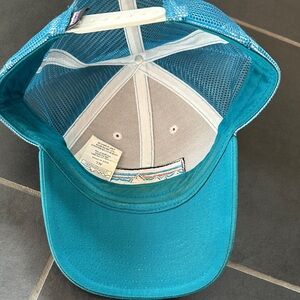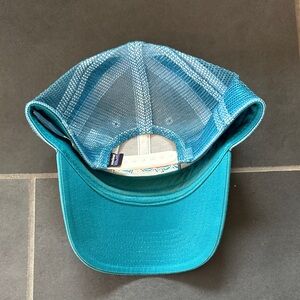 Patagonia cap with teal front and cream mesh. Iconic logo patch on front.