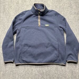 LL BEAN Sweater Mens L Reg Blue Fleece Pullover 1/4 Snap Slightly Fitted 298050