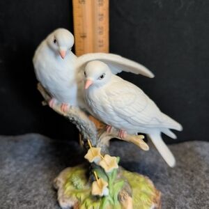 The Vtg Maruri USA "Wings of Love" Fine Porcelain Doves Figurine D-9021 from 1990 is a small collectible figurine that depicts two doves in a loving embrace. Handcrafted in the 1980s, this figurine features a wooden base and a matte finish, adding to its charm. The multicolored porcelain figurine is a perfect addition to any room, and it represents the theme of love in the late 20th century. This original piece, signed by Maruri USA, is a unique and decorative collectible that captures the essence of love through its intricate design.