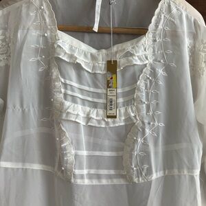 New with tags LC Lauren Conrad blouse. Ruffled front, and delicate embroidery. Size large. It reminds me of the brand Doen and Sezane. Delicate and feminine. Perfect for layering. Smoke free home. Good condition.
