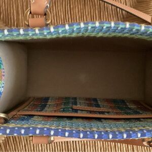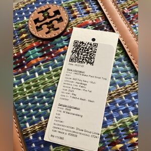 Tory Burch woven Blake Satchel with detachable long strap and inside slip pocket This is a Tory Burch sample bag from sample sale. Measures approximately 10” length, 8” high, 4” deep. Excellent condition, smoke free.