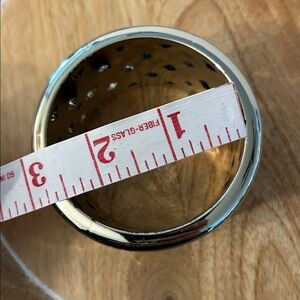 silver-tone basketweave cuff bracelet, characterized by its thick, interlaced design and high-shine finish