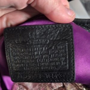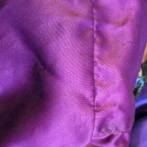 Interior: lined with a purple sateen fabric, two zip pockets and additional snap close compartment.