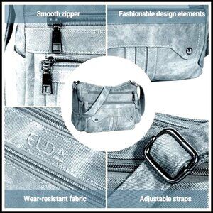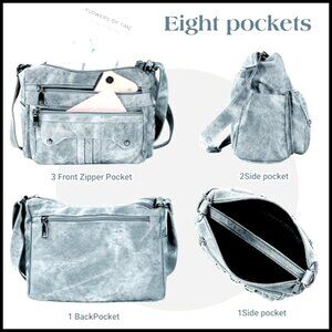 Medium Hobo Crossbody Bag Lightweight Multi Pocket Vegan Leather Adjustable