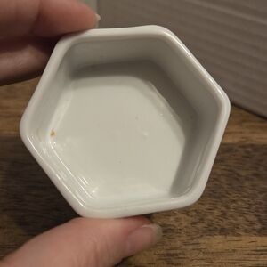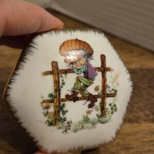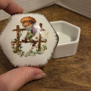 Charming hexagonal ceramic trinket box featuring a boy illustration. Perfect for small keepsakes.