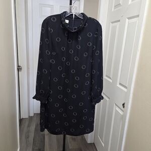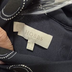 Hobbs Black Dotted Dress | Elegant Shift Midi | Ruffle Sleeve