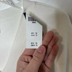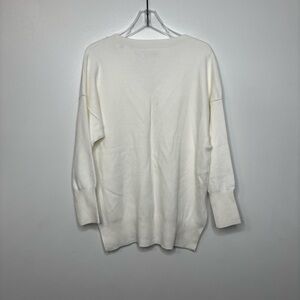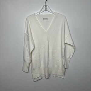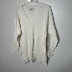 New with tags ivory/off white V-neck sweater from the Soft A&F Collection. Oversized relaxed fit with drop shoulders, side slits, and longer back hem for that effortless minimalist look. Lightweight knit with a smooth, soft feel.