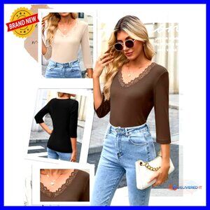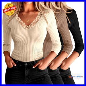 Brand new, never worn, and in flawless condition — this 3-pack of chic 3/4 sleeve tops offers a versatile, sexy, and comfortable fit perfect for casual outings, work, or parties. The ribbed cotton fabric and delicate lace-trimmed V-neck create a flattering, modern look.