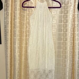 Jessica Simpson Fitted White Lace Halter Maxi Dress