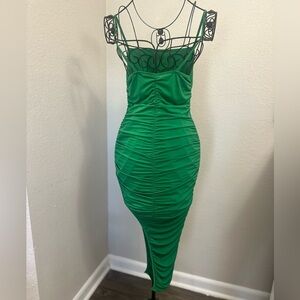 Papermoon Green Ruched Asymmetrical Cocktail Dress