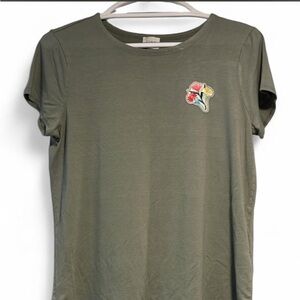 Cupio Sage Green Short Sleeve Tee with Floral Accent Size Women’s L