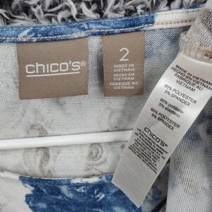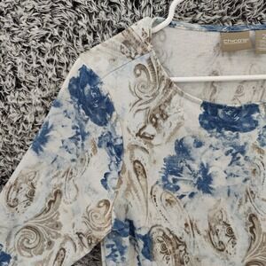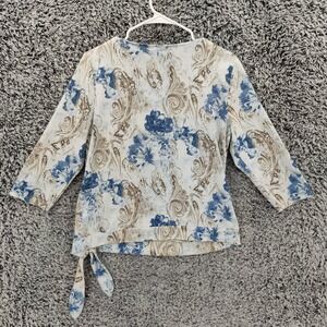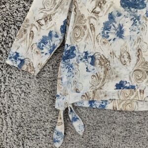 Chicos Womens Coastal Romantic Floral Paisley Side Tie Top 2 Large Blue White